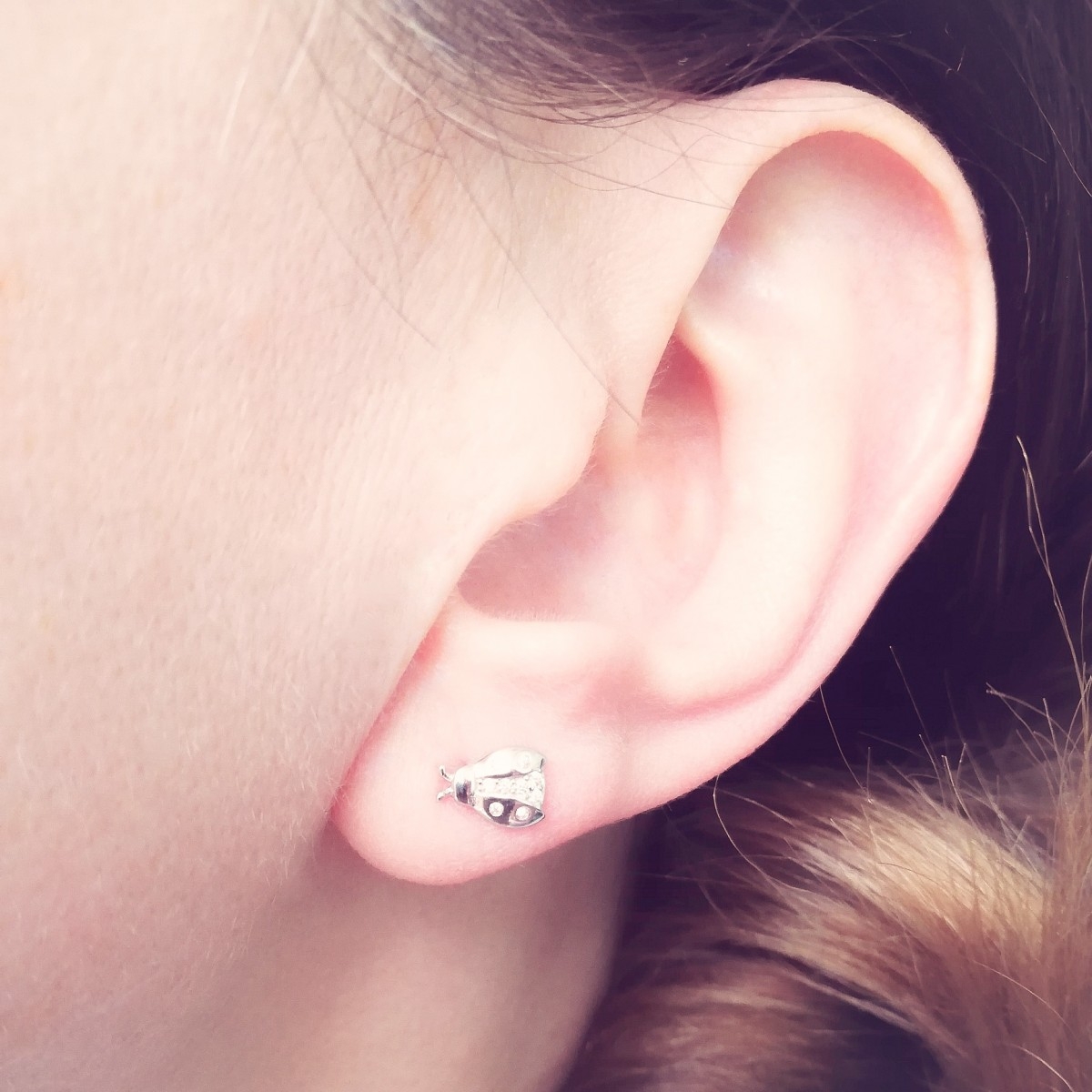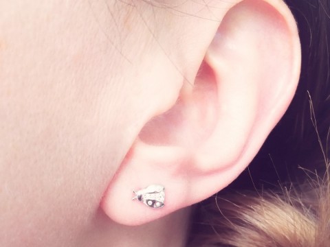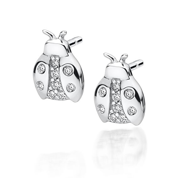 Kolczyki z motywem biedronki. Zdobione cyrkoniami. Uszlachetnione rodem.