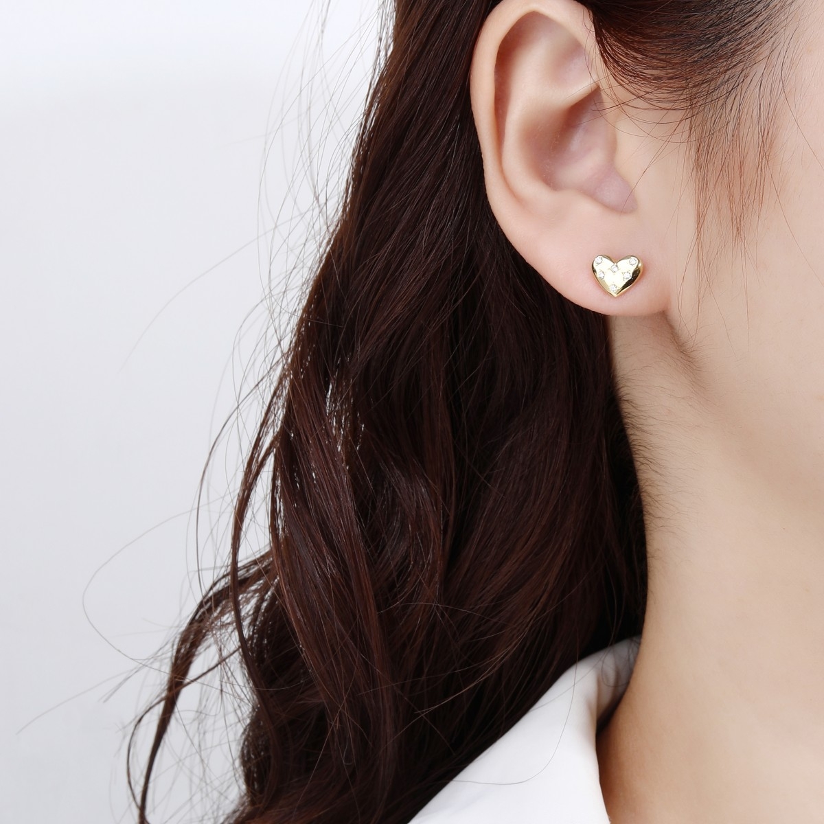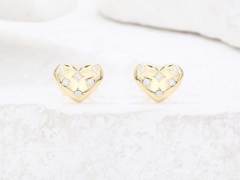 Kolczyki z motywem serca wysadzane cyrkoniami. Wykończone wysokim połyskiem.
