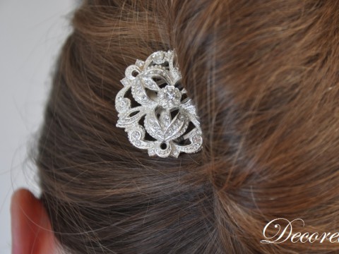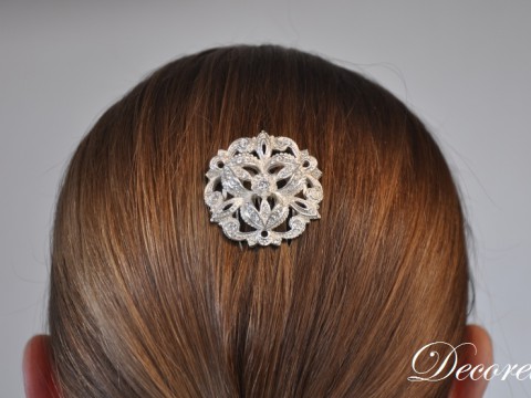 Elegancki grzebień z efektownymi, kryształowymi kamieniami Swarovski Elements. Posrebrzany, zabezpieczony w procesie galwanizacji filtrem UV, dzięki czemu długo zachowuje niezmienioną barwę. Produkt niealergizujący. Wykonany ręcznie.