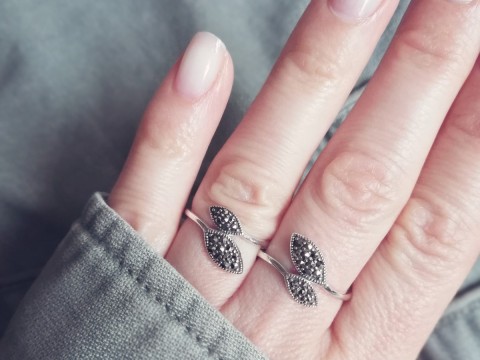 Pierścionek zdobiony mieniącymi się markazytami.
