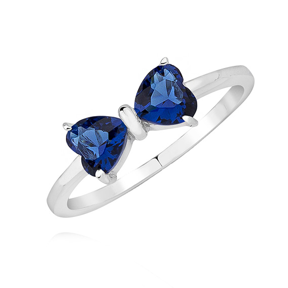 Pierścionek zdobiony kokardką z szafirowej cyrkonii. Wykonany ze srebra uszlachetnionego rodem, by dłużej zachował jasną barwę, blask i był odporniejszy na uszkodzenia.