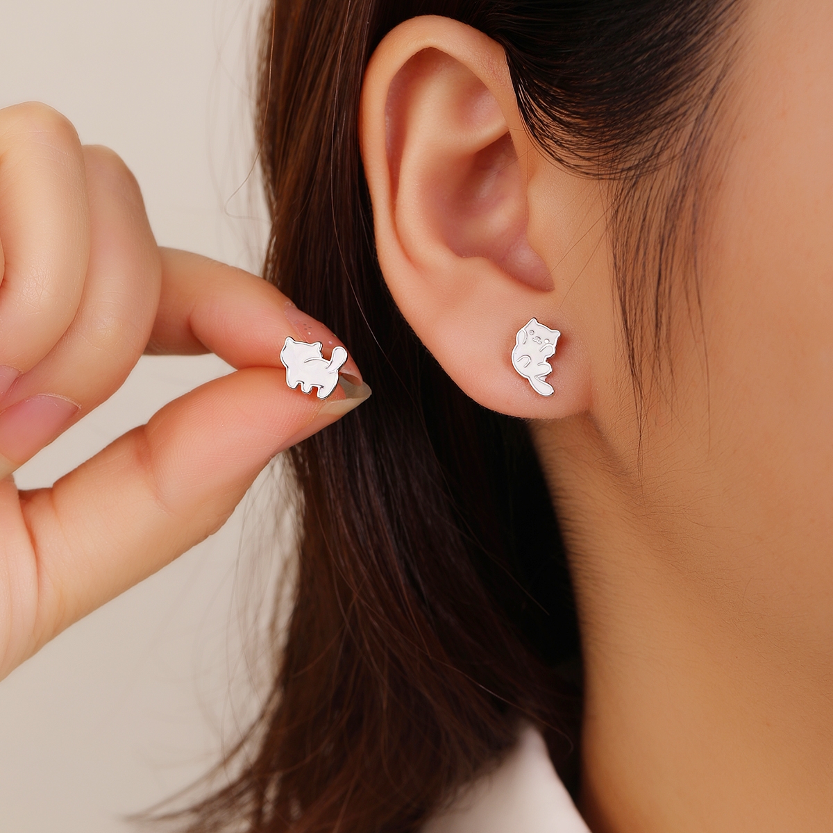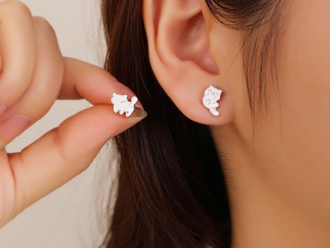 K851T KOLCZYKI biały kot przód i tył