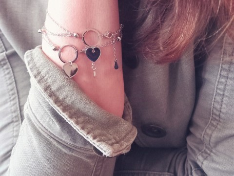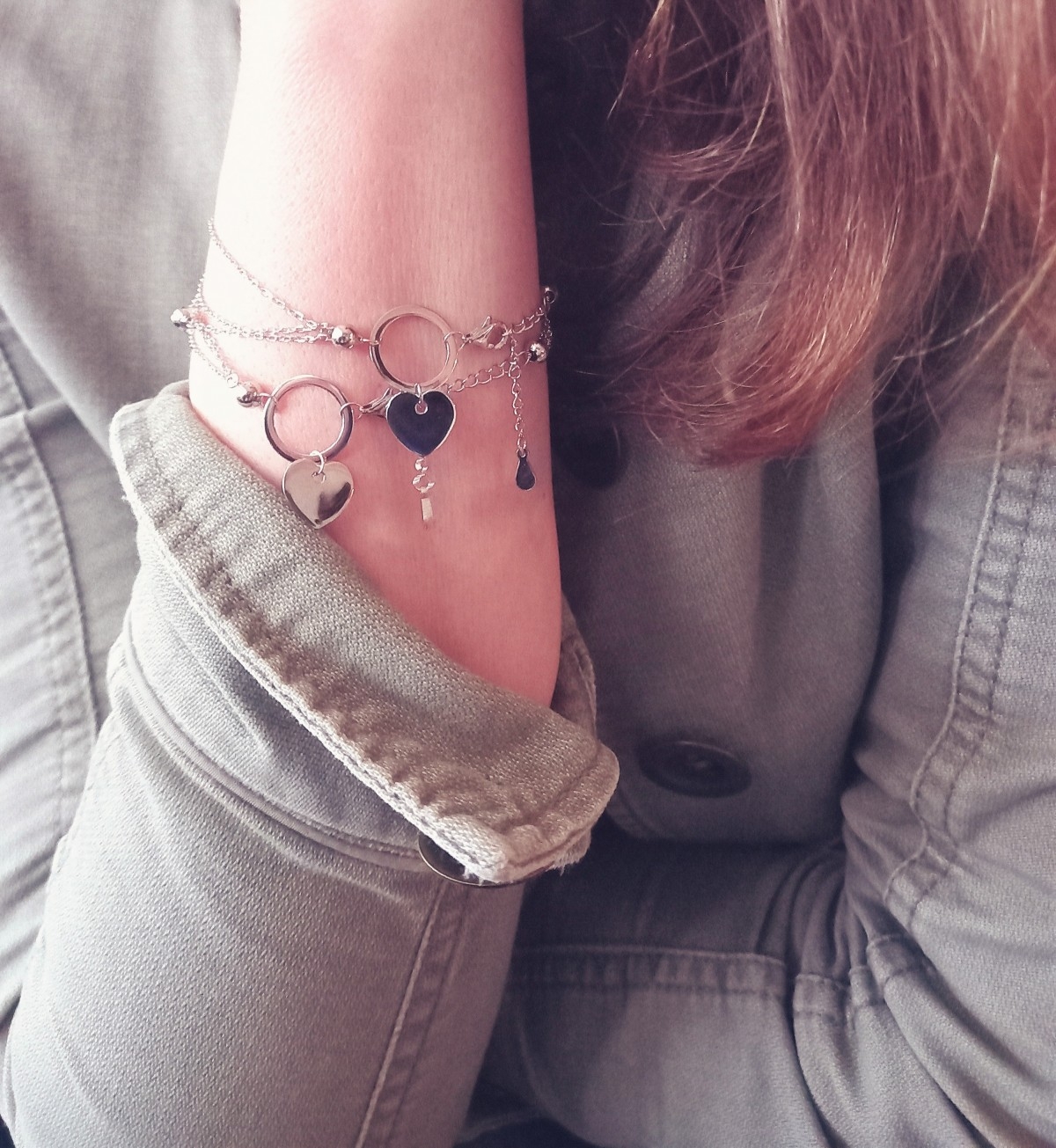 Bransoletka wykonana z trzech łańcuszków z kuleczkami. Zdobiona motywem okręgu z zawieszką w kształcie serca. Wykonana ze srebra uszlachetnionego rodem, by dłużej zachowała jasną barwę, blask i była odporniejsza na uszkodzenia.