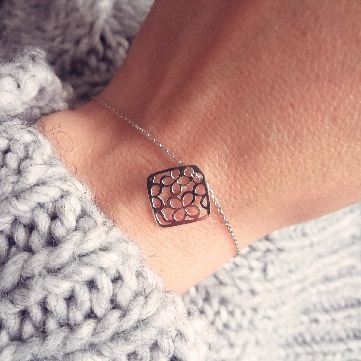 B271L BRANSOLETKA romb z kwiatkami