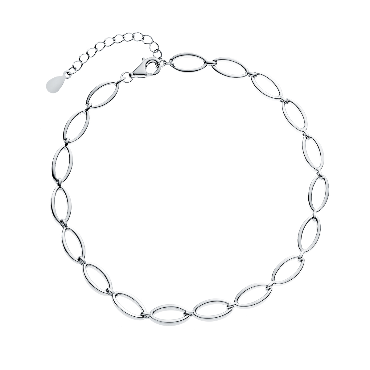 Bransoletka wykonana z owalnych ogniwek. Zapinana na karabińczyk. Posiada przedłużkę. Srebro uszlachetnione rodem.
