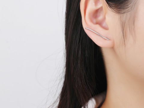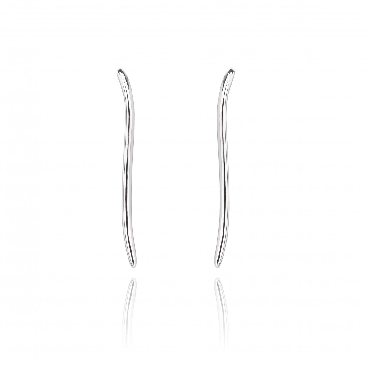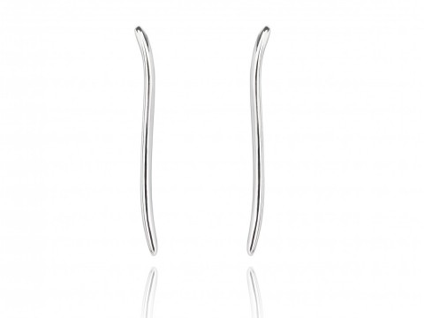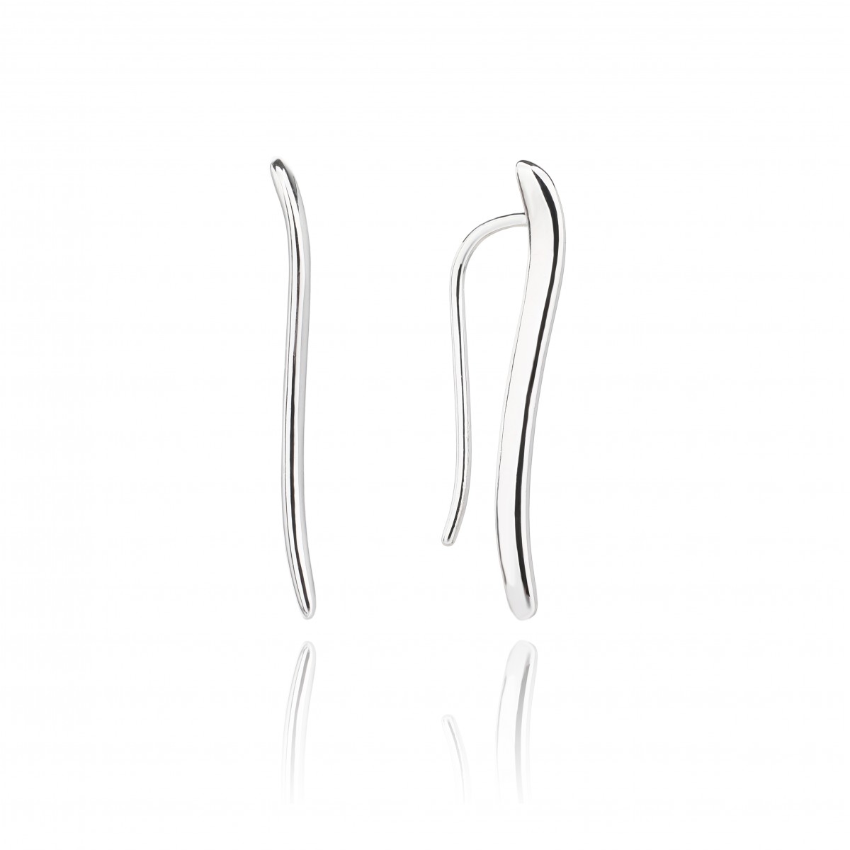 Kolczyki w formie nausznic o kształcie delikatnie falującej linii. Uszlachetnione rodem, wykończone połyskiem.