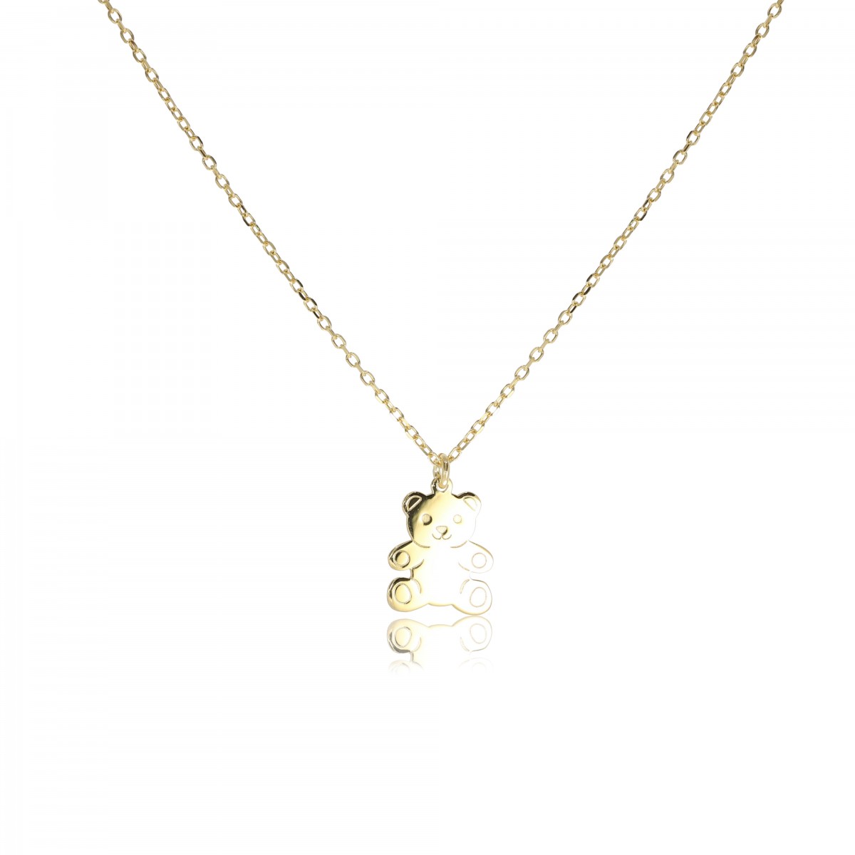 Naszyjnik wykonany z klasycznego łańcuszka o splocie ankier i zawieszki z motywem misia. Naszyjnik wykończony połyskiem. Zapinany na federing z przedłużką.